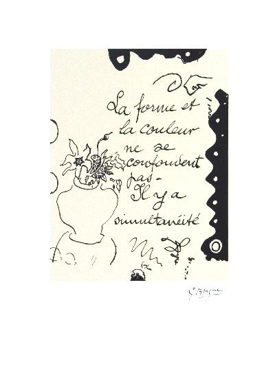 Fabulous Braque-La Forme, This is a wonderful exciting Offset Lithograph.La forme et la couleur ne se confondent pas, il y a simultaneitie. This translates in English to "Form and color do not merge, they are simultanous." Limited edition reproduction of Braque's "La Forme" printed on Stonehenge Paper, plate signed but not numbered. Published by Maeght and printed by